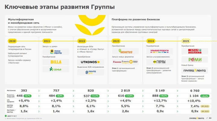 #LENT опубликовала операционные результаты за 4 квартал и 2025 год. По отчёту это уже уже совсем не «сеть гипермаркетов», а мультиформатная платформа федерального масштаба.