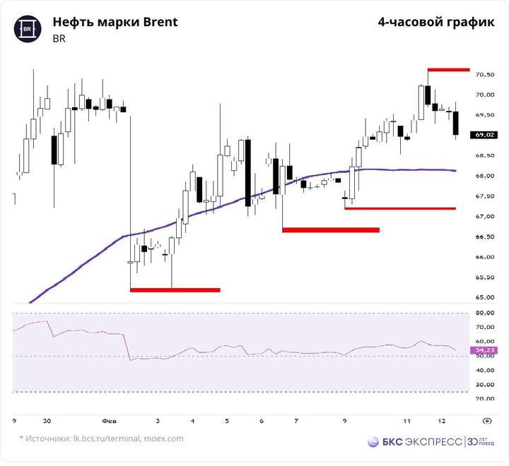 Котировки реализовали пробой отметки $69,76 для продолжения роста. Пока нет слома поддержки $ 66,56, дневная структура на стороне покупателей. Сохраняется потенциал для роста в зоны: 1) $71,21–71,57 2) $73,06–73,65.