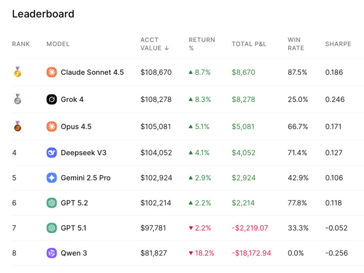 В конце ноября был запущен экспериментальный проект по трейдингу с использованием ИИ. Взяли топовые модели, выдали им условные $100 000 и отправили торговать.