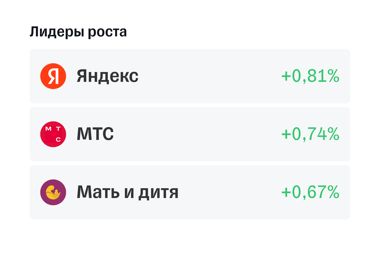Взлеты. По итогам дня из Индекса Мосбиржи Яндекс, МТС, Мать и дитя.