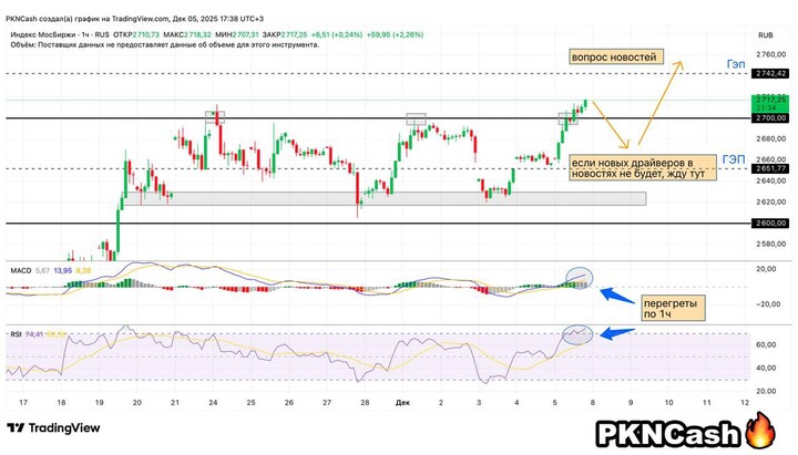 3 декабря писал, что жду рост рынка от уровня 2630, факт есть факт, рынок выше 2700 - хейтерам в комментариях отдельный привет 👋